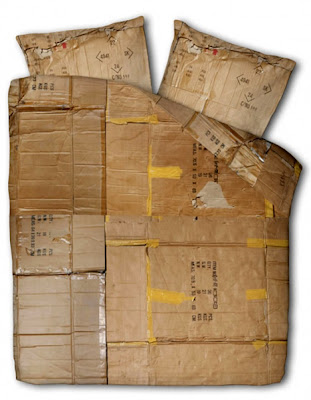 Hay cosas en la vida que o se odian o se aman pero no dejan indiferente. Las imágenes dejan poco lugar a la duda. Se trata de fundas de edredón realizadas en puro algodón pero con apariencia de cartón, imitando así los cartones que lamentablemente utilizan tantos sin techo para cubrirse durante sus largas noches.